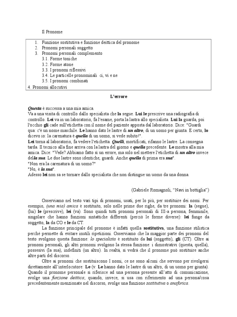 Personali Pronomi In La Grammatica Italiana